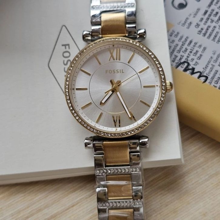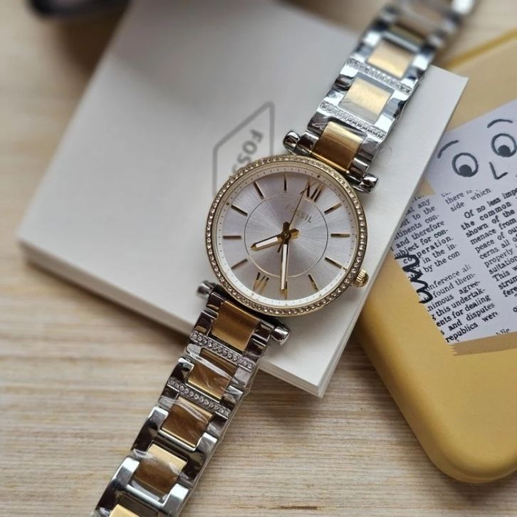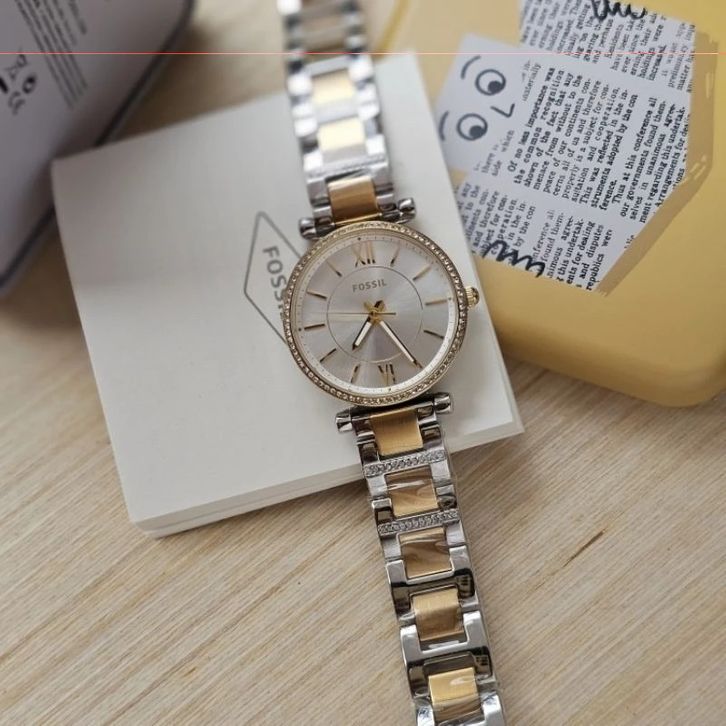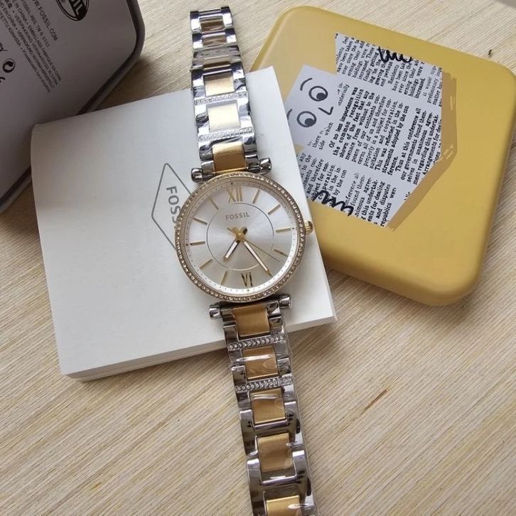 JAM TANGAN WANITA FOSSIL CARLIE ES4517 / ES 4517 SILVER COMBI STAINLESS STEEL FREE ONGKIR BOX ORIGINAL