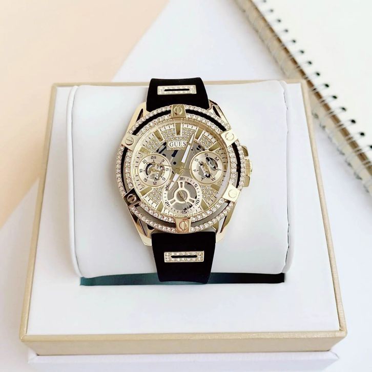 JAM TANGAN WANITA GUESS GW0536L2 GOLD BLACK RUBBER FREE ONGKIR - FREE BOX ORIGINAL