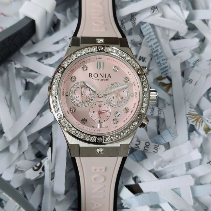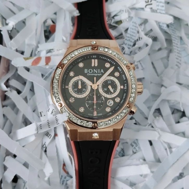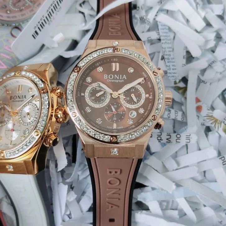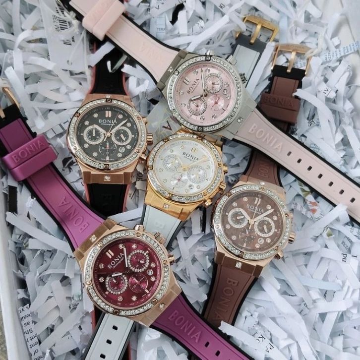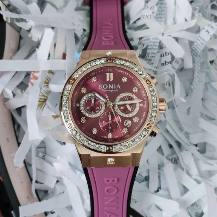 JAM TANGAN WANITA BONIA BNB10809 CHRONOGRAPH SERIES RUBBER- FREE ONGKIR - FREE BOX ORIGINAL