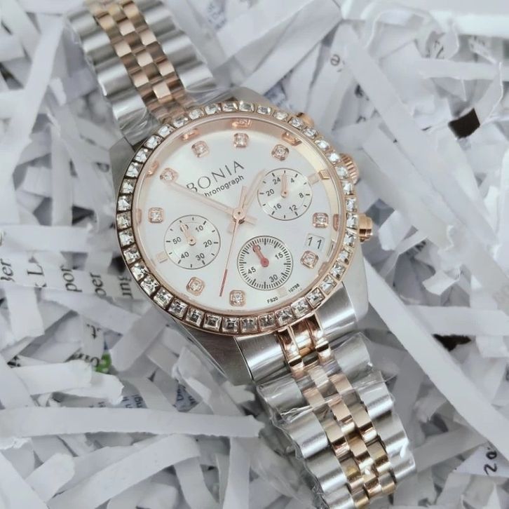 JAM TANGAN WANITA BONIA BNB10798 JUBLIE CHRONOGRAPH SERIES STAINLESS STEEL- FREE ONGKIR - FREE BOX ORIGINAL