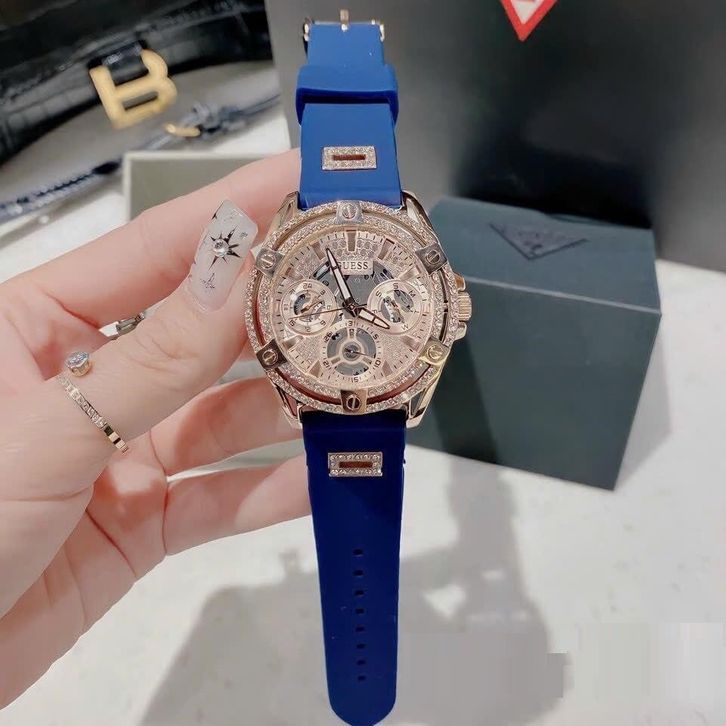 JAM TANGAN WANITA GUESS GW0536L5 ROSEGOLD BLUE RUBBER FREE ONGKIR - FREE BOX ORIGINAL