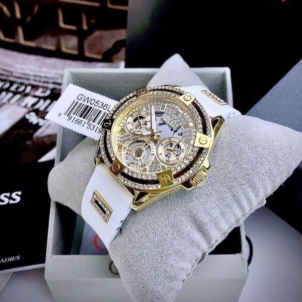 JAM TANGAN WANITA GUESS GW0536L2 GOLD WHITE RUBBER FREE ONGKIR - FREE BOX ORIGINAL