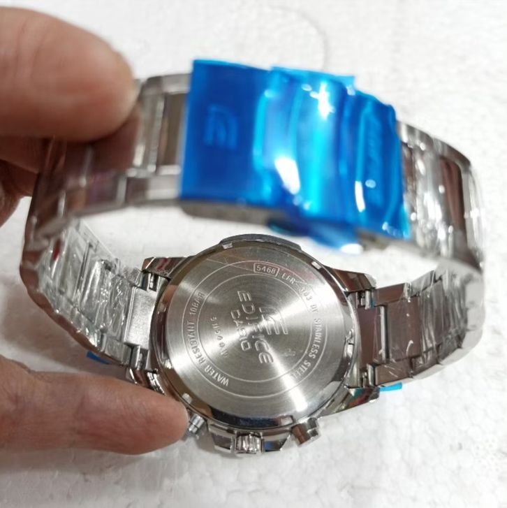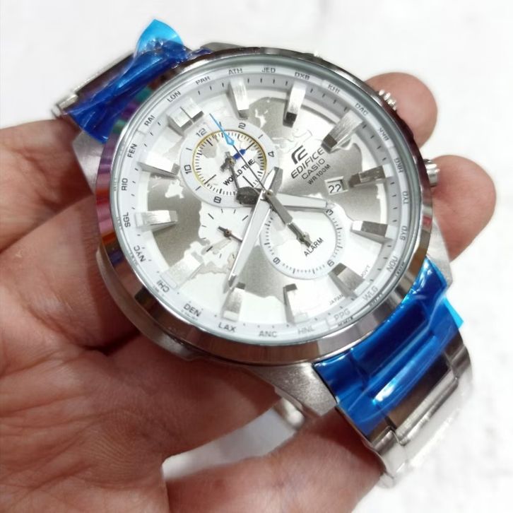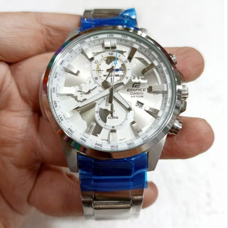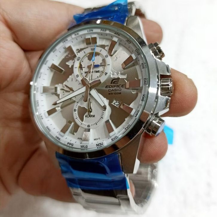 JAM TANGAN PRIA CASIO EDIFICE EFR-303D-7AVUDF STAINLESS STEEL SILVER DIAL WHITE - FREE BOX ORIGINAL-GARANSI 1 TAHUN