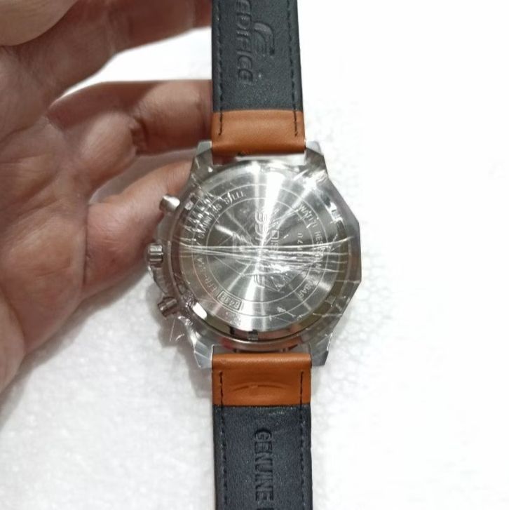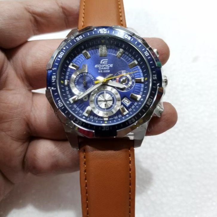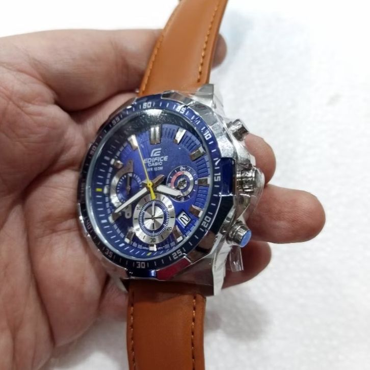 JAM TANGAN PRIA CASIO EDIFICE CASIO EFR-554L-2AV LEATHER BROWN BLUE ORIGINAL CHRONOPRAPH TALI KULIT ELEGAN&ANTI AIR