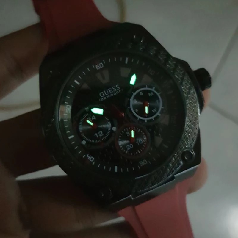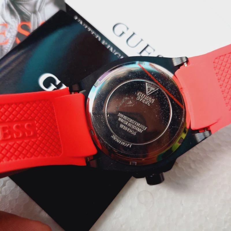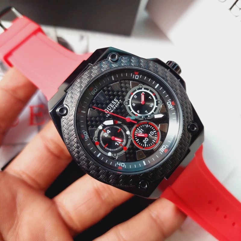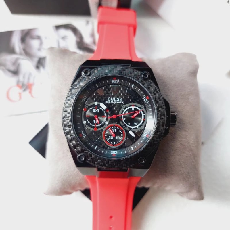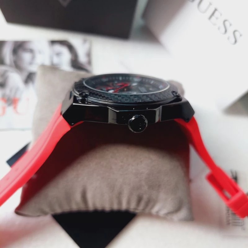 JAM TANGAN PRIA GUESS W1049G6 BLACK RED RUBBER - FREE BOX BIASA FREE ONGKIR