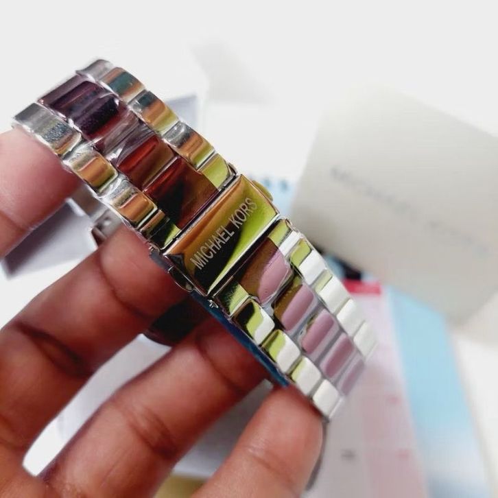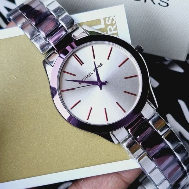 JAM TANGAN WANITA MICHAEL KORS MK3659 SILVER COMBI PURPLE STAINLESS STEEL FREE ACC- FREE ONGKIR - BOX ORIGINAL