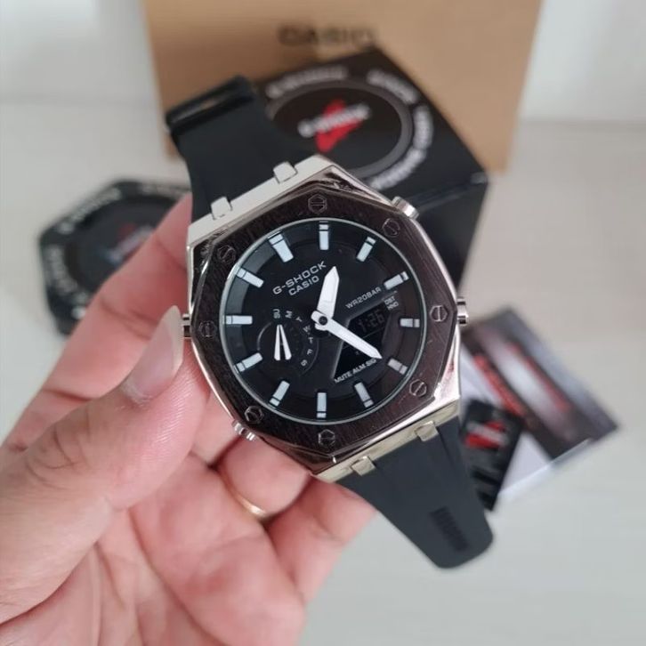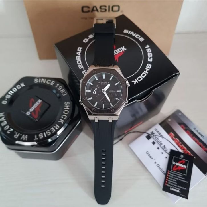 JAM TANGAN PRIA CASIO G-SHOCK GM-2100 Silver Ring Black- FREE ACC- FREE ONGKIR - BOX ORIGINAL