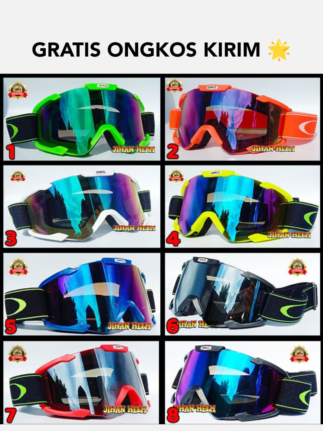 KACA / KACA MATA CROSS / GOGGLE CROSS INKO / KACA HELM CROSS INKO YELLOW TERBARU