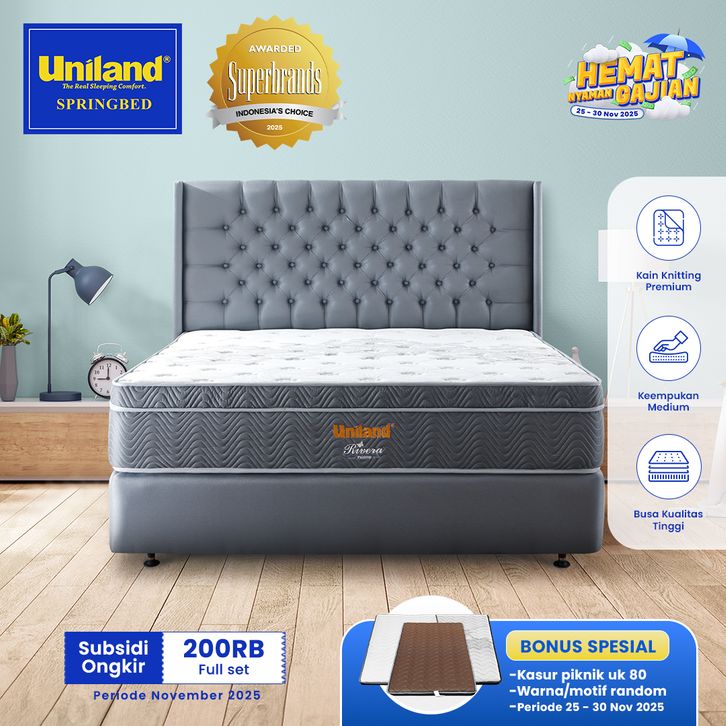 Uniland Springbed Rivera Plushtop Paris - Kasur Spring Bed Matras Full Set
