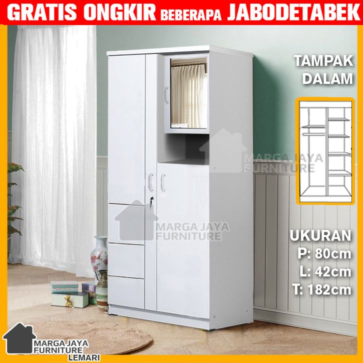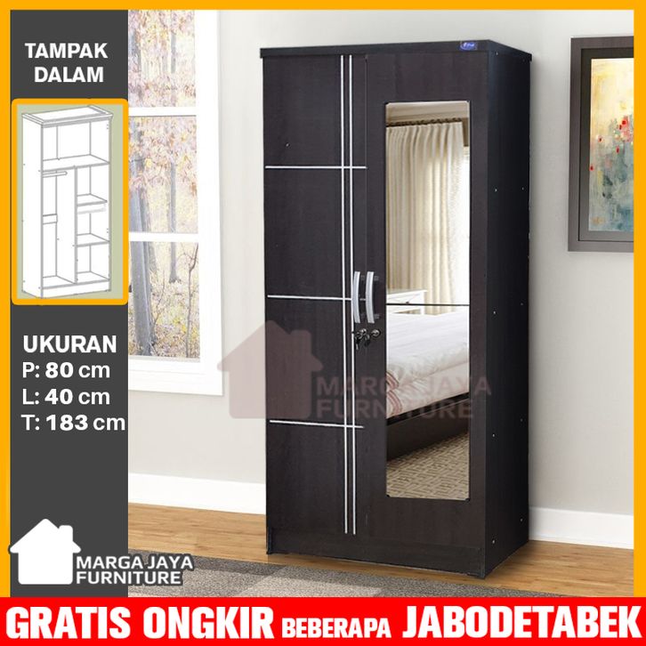 lemari pakaian 2 pintu kaca rias cermin laci minimalis