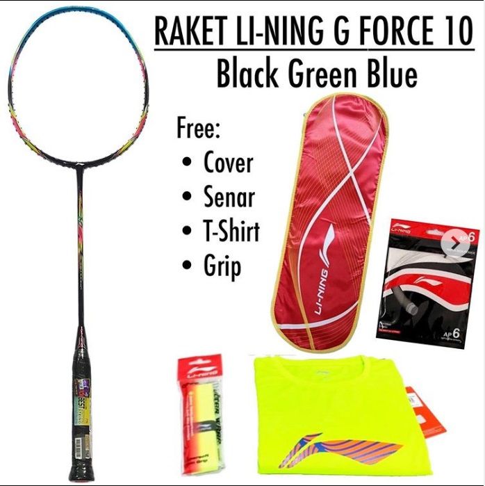 Raket Badminton Lining G Force 10 Black Green Blue Original Harga Promo Murah [ADHA SPORT]