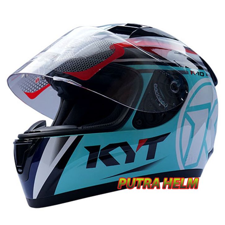 Terlaris Helm kyt r10 helm full face flat visor aqua blue original
