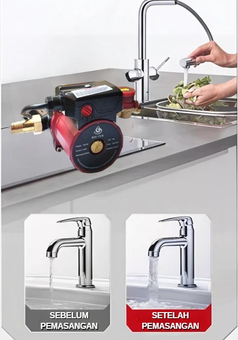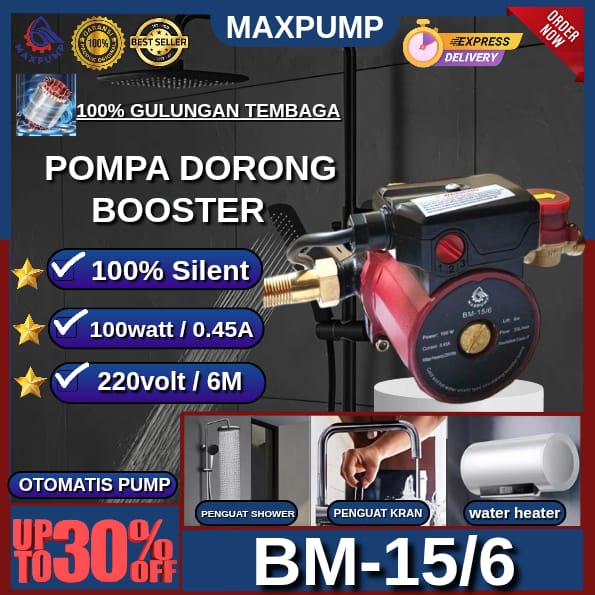 MAXPUMP POMPA PENDORONG / POMPA BOOSTER OTOMATIS SILENT + FLOW SWITCH SATU SET BM15/6