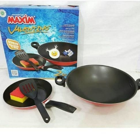 Maxim valentino set Teflon Valentino Set - Frypan 22 cm + Wok 30 cm - Merah
