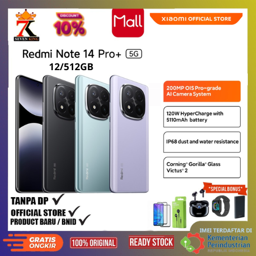 {Official Store✅} Xiaomi Redmi Note 14 Pro+ 5G 12/512GB | 200 MP AI Camera OIS | 120W HyperCharge 5110mAh - RESMI