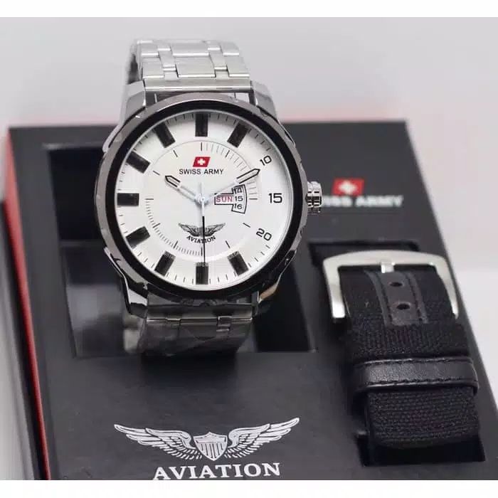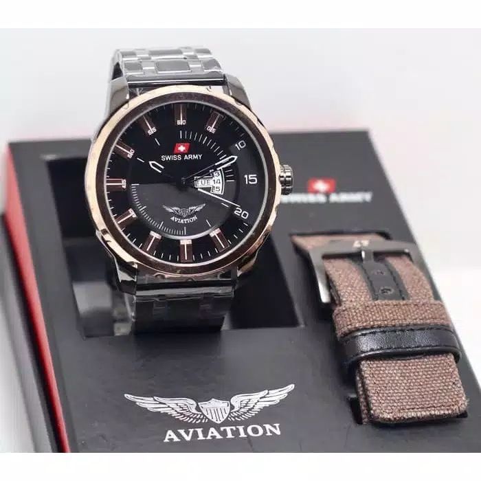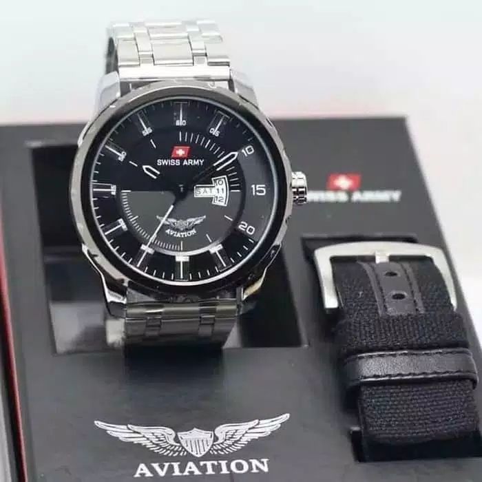 Terlaris Jam Tangan Pria Swiss Aviation Tanggal Hari ET 11577 Free Kanvas & Box