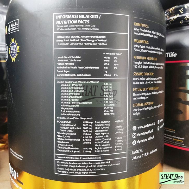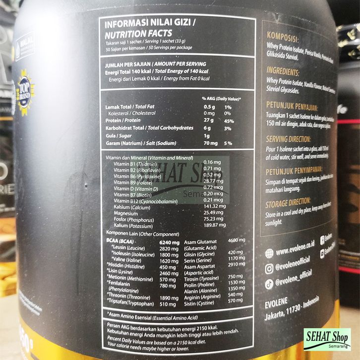EVOLENE Isolene 50 Sachet ( 1.650 Gram ) Susu Whey Protein Isolate Lokal
