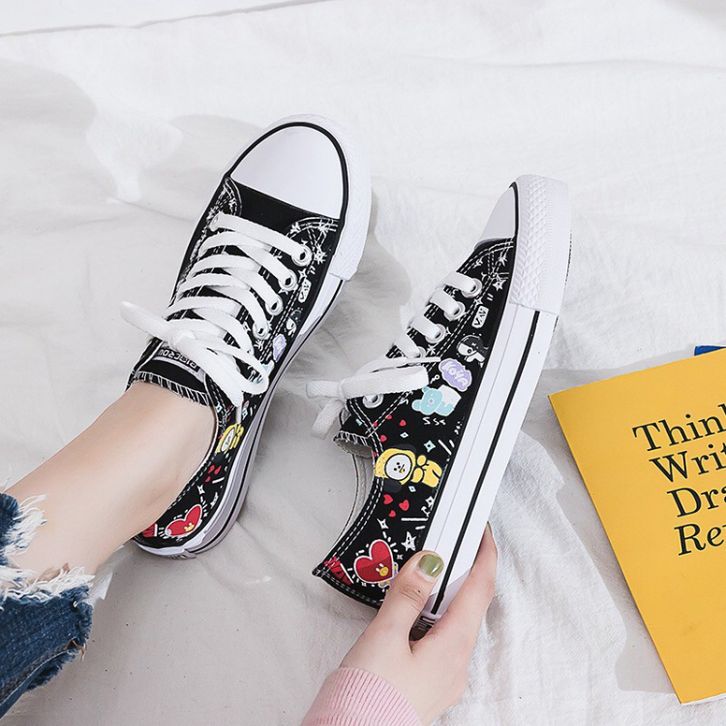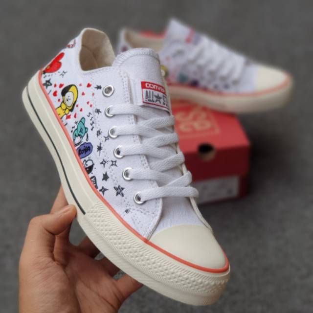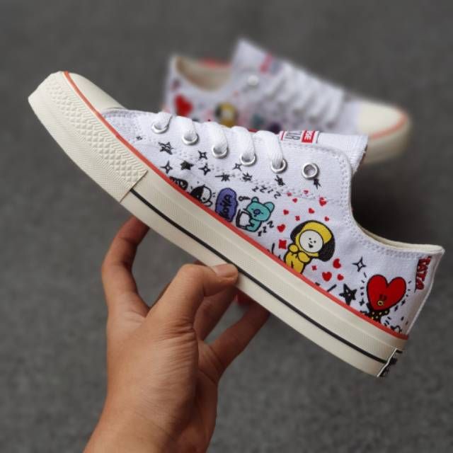 OBRAL SEPATU SNEAKERS WANITA X BT21 KARAKTER PUTIH GRADE ORIGINAL 36-40