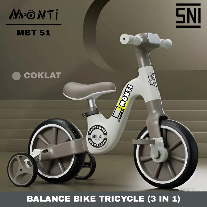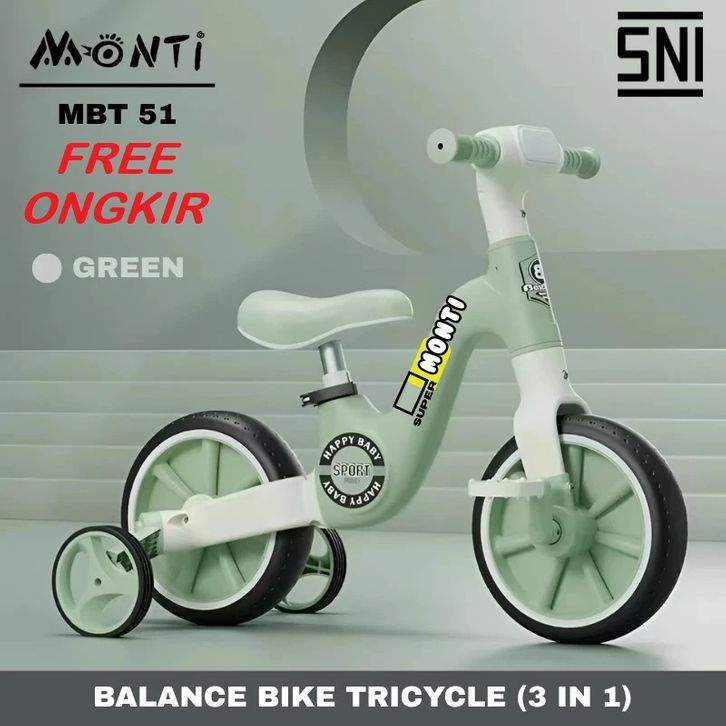 Monti MBT-51 3in1 Sepeda Anak Roda 2 Tricycle Balance Bike dengan Musik SNI Green Black Brown Multifungsi & Fitur Musik