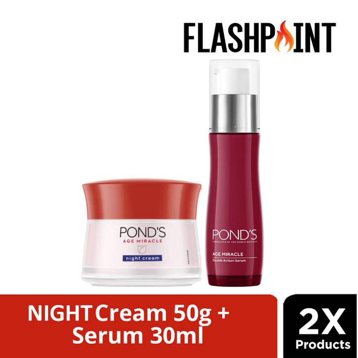 (FREEONGKIR) [SUPER HEMAT] POND'S AGE MIRACLE NIGHT CREAM 50G + SERUM 30ML PONDS AGE MIRACLE