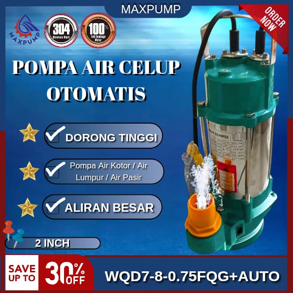 MAXPUMP WQD7-8-0.75FQG Pompa Celup Air Kotor 2inch Blade Otomatis Pisau + Saklar Grinder 1Hp